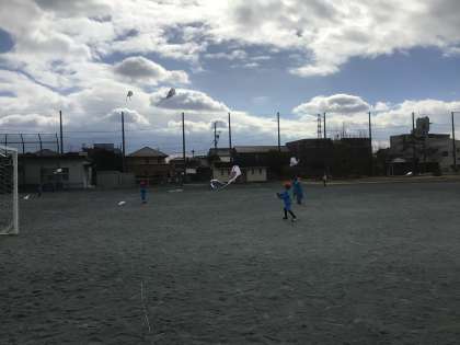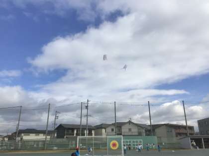 凧揚げ、上手になりました。糸がなくなるぐらいあがる子も出てきて、たくさん楽しみました。