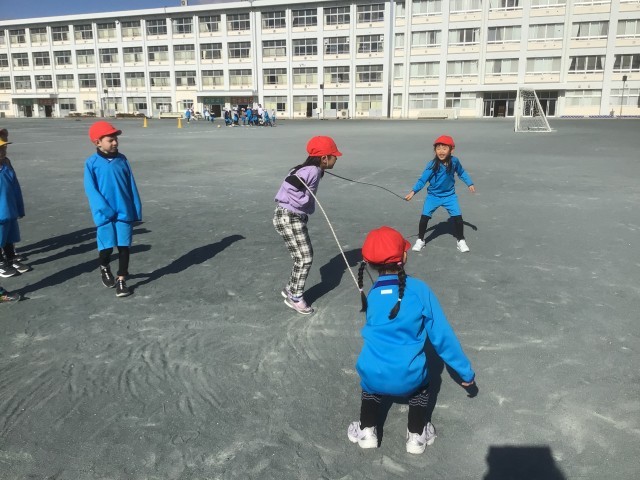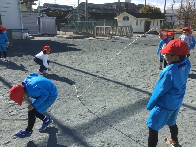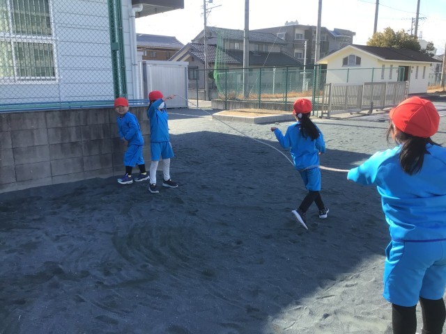 今日は、長縄に挑戦です。みんなで声を合わせて跳びました。