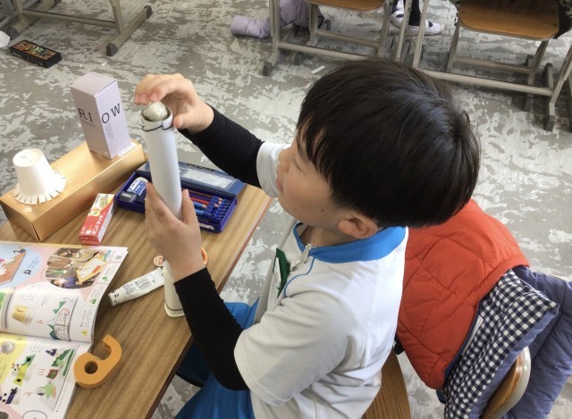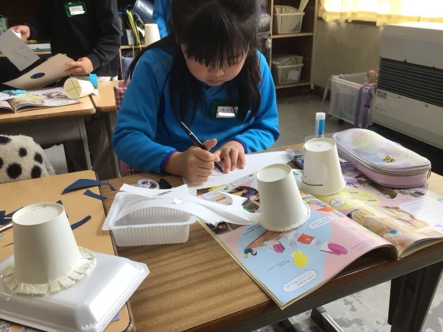 紙コップが飛び出す仕掛けを作って楽しみました。