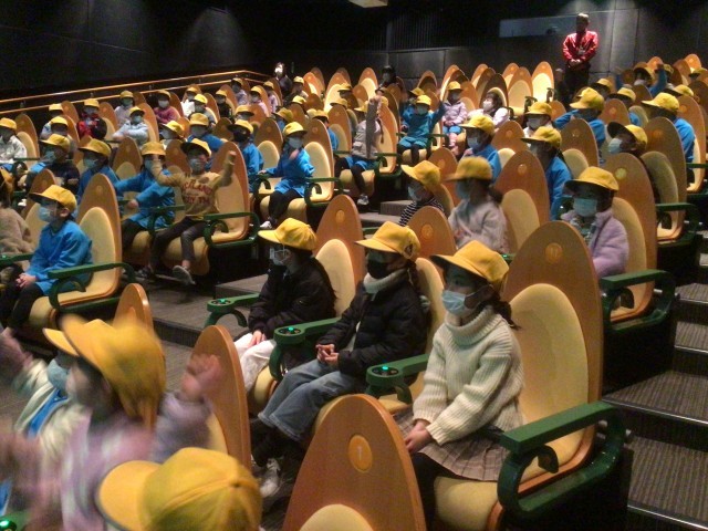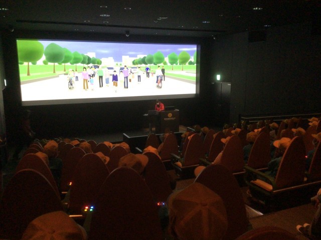最初はシアターで交通安全に関するクイズにチャレンジしました!
