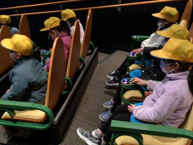 シアターで、交通安全クイズに挑戦。手元のボタンで回答しました。