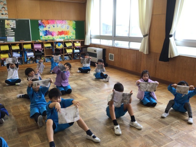 1人一枚雑巾を持って雑巾が真っ黒になるまで床を磨きました!