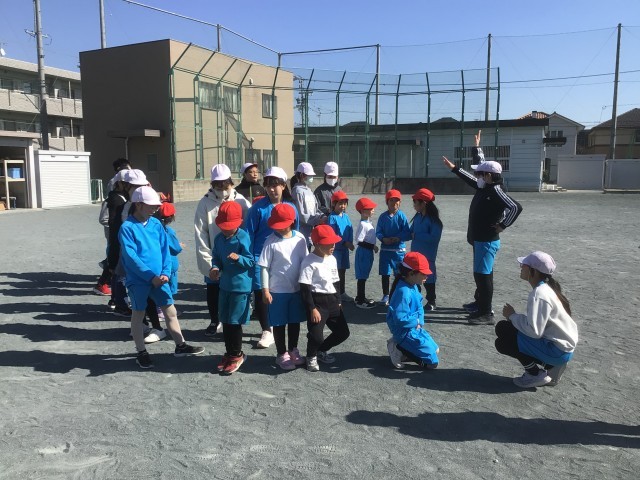 6年生が、楽しい遊びを考えてくれました。説明を聞いて、さあ始まるよ!
