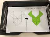 三角形のマグネットを組み合わせて見本と同じ形を作る