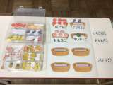 生き物や食べ物のシールが貼られたマグネットを同じシールの場所に並べる