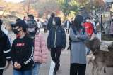 お土産屋さんの前には、シカがたくさん来ていました。
