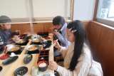 食事の後、お土産を買っていました。その後、バスで学校まで戻りました。