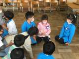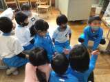 みんなで「しりとり」遊びです。係になった子が、遊びの説明をしてくれました。上手に...