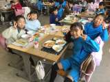 今年度最後の給食です。この日のメニューは、ツイストパン、ポークビーンズ、コールス...