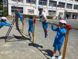 長放課です。 子どもたちは、運動場に出て元気いっぱいに遊びました。 ジャングルジ...