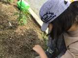 学校の畑に植えた野菜が、だんだん大きくなってきました。今日は、雑草をたくさん取...