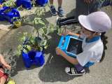 野菜の観察をしました。iPadを使って野菜の様子を写真に撮ったり、30cmものさ...