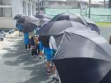 とてもいい天気で、校外学習日和でした。日射しもあり、暑さ対策で日傘を差した子が...