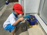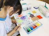 絵の具を使ってにじみ絵をしました。 色あざやかなしゃぼん玉ができました。