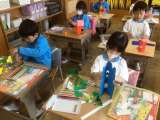 紙を折って切って、たてたら何に見えるかな。 楽しく話をしながら想像を広げて作品づ...