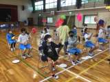 友達と横に並んで、リズム打ちを楽しみました。ゆっくりから、速いバージョンまでやっ...