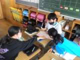 家庭科では、自分の靴下を手洗いしました。後片付けや干すところまで、班で協力して...