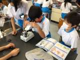 双眼実体顕微鏡を使い、様々なものを観察しました。初めて見るミジンコの姿に、歓声...