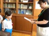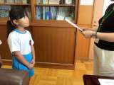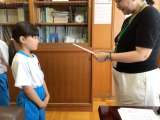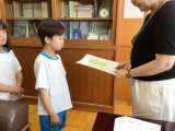 校長室にて校長先生よりかがやき賞をいただきました。