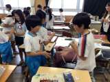 2組の授業です。文房具を英語を使って表現しました。自分の持っている文房具を友だち...