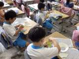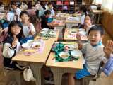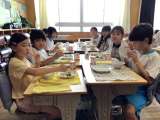 配膳もみんなでがんばっています。 みんなでいただきます!