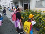 同じ日の1年生の様子です。多くの1年生が登校後にアサガオに水やりをしていました。