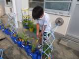 4年生は、ツルレイシに水やりをしていました。このときはこの大きさでした。そのツル...