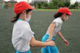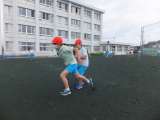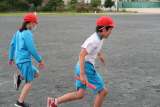 2組の体育の授業の様子です。3組と同じく50mリレーの練習を行っていました。
