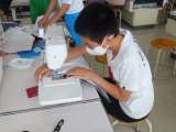 家庭科の授業の様子です。ミシンを使ってナップザックを作り始めていました。