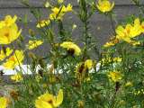 西方面から歩いて行くと、左側のホウセンカの花壇では、他の植物の花を見ることができ...