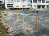 明日から登校する東昇降口付近です。1年生がアサガオの水やりで使った手洗い場があり...