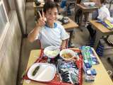 今日も明るい笑顔で食べていました。子ども達は給食の時間が大好きみたいです。