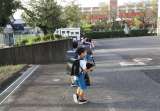 北門を出て帰っていく3年生です。大きな声で「さようなら」と言いながら帰っていきま...