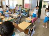 学級委員がみんなの前に立ち、さよならの挨拶をしています。