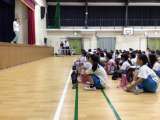 体育館で防犯教室がありました。不審者や不審な車を見かけたときにどうしたらよいか教...
