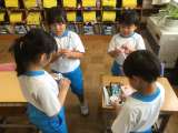 グループの子と、計算カードの練習です。カードのめくり方にもコツがある様です。