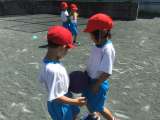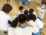 ボールを使って、コースを友だちと一緒に走りました。どんな運び方がスムーズに進むの...