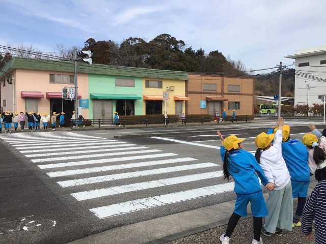 横断歩道の渡り方の練習をしました。交通安全に気をつけながら街の中のミッションをク...