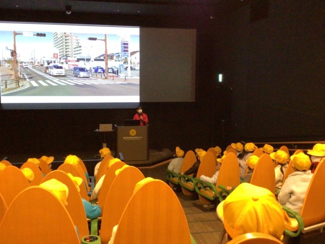 シアターでは、身近な場所の写真を見せながら、横断するときに気を付けるとよいこと...