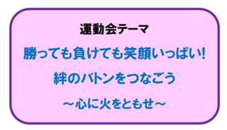 認証式の後、体育委員会から今年の運動会テーマが発表されました。全校児童から募集した案の中から、体育委員会で話し合って決定したテーマは、 「勝っても負けても笑顔いっぱい!絆のバトンをつなごう」 このテー...