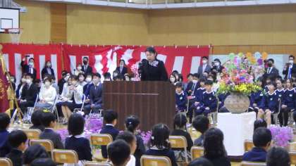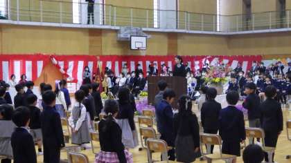 入学式では、一人ずつ名前を呼ばれ、堂々と返事をしました。話している人の方を見て、しっかりお話を聞くことができました。