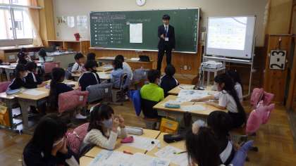 姿勢よく、手をピンと挙げています。緊張する中、子どもたちはとてもよくがんばりました。