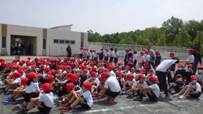 暑い日でしたので、赤白帽をかぶり、水筒で水分補給をしながらの撮影となりました。