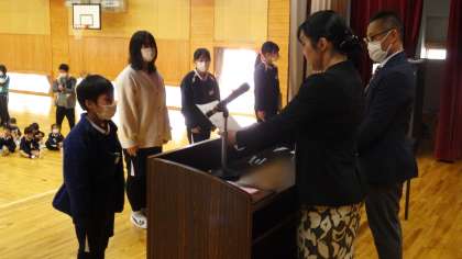 4/24 全校集会(認証式) 公開日 2023/04/24 更新日 2023/04/24 学校行事 久しぶりに全校で体育館に集まっての集会を行いました。企画委員、委員会の委員長、学級委員の認証を行いました。さすがリーダー、返事や態度がとても立派でした。 委員会