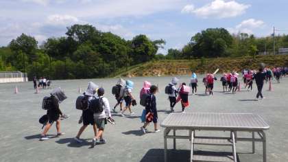 5/12 お迎え訓練 公開日 2023/05/12 更新日 2023/05/12 学校行事 大規模災害発生時の下校方法確認のため、お迎え訓練を実施しました。訓練用の緊急地震速報を放送で流れると、子どもたちは机の下に入り、放送の指示に従って運動場に避難しました。整然と避難できました。 行事