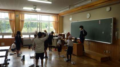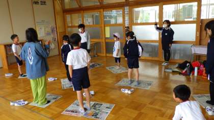 5/15 1年生を迎える会 その5 公開日 2023/05/16 更新日 2023/05/16 学校の特色ある活動 それぞれの教室に分かれて、グループで遊ぶ時間です。わくわく班で準備していた遊びをしました。だるまさんがころんだやハンカチ落とし、風船バレーや新聞紙を使った遊びなど、低学年も楽しめる遊びをしていました。