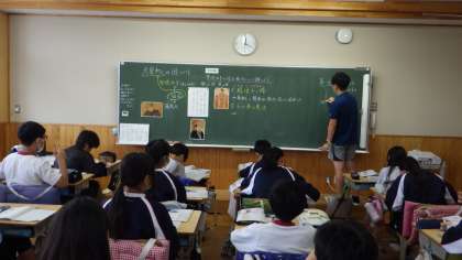 6年生の社会科の授業です。聖徳太子の政治について調べていました。わかりにくいところは現在の生活に置き換えて考えていました。
