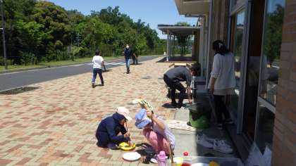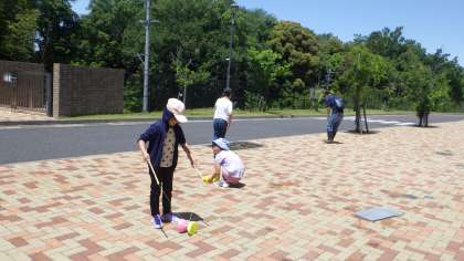 共働本部主催で、「体力づくり」「土曜講座」などの土曜学習を行っています。写真は、「どようあそびば」の様子です。この日は、共働本部のかき氷機の試運転で使った氷で遊んだり、駒、ボール遊びをしたりしていました。