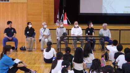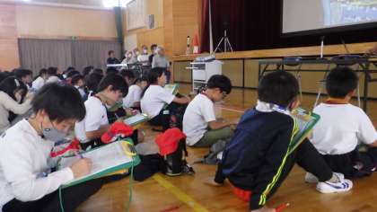 5/31 里山づくりの会の方々と 4年生 公開日 2023/06/02 更新日 2023/06/02 各学年から 4年生の総合的な学習の時間です。まごころの森や伊保川の整備をしてくださっている「里山づくりの会」の方々をお招きし、お話を伺いました。整備をしてくださることになった経緯や、どんなことを考えて整備をしてくださっているか等をお聞きしました。子どもたちは真剣に話を聞き、質問をしていました。 4年