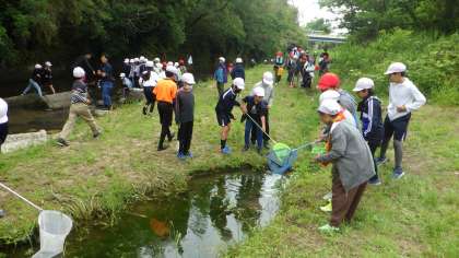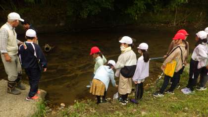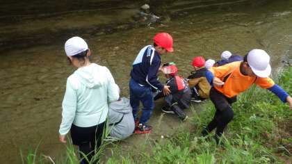 子どもたちは、川の中に少し入ったり、小川で生き物を探したりしていました。これからの活動が楽しみです。里山づくりの会の方々も、子どもたちとの活動をとても喜んでくださいました。これからもよろしくお願いします。